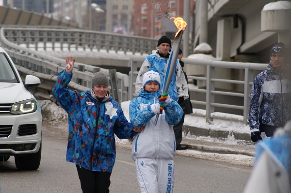 Воспитанница Екатеринбургского специального (коррекционного) детского дома № 3 Ольга М. вошла в число факелоносцев и была удостоена чести пронести факел по улицам родного города вместе со своим тренером Мезенцевой Екатериной.