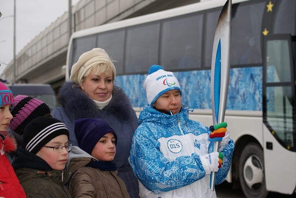 Ольгу приехали поддержать ее друзья из детского дома вместе с воспитателем. К сожалению, юной спортсменке (Ольга 2 года занимается лыжными гонками, является победителем и призером многих престижных соревнований и спартакиад) достался не очень удобный участок – эстакада. Поэтому болельщики не смогли приветствовать Ольгу на протяжении всего этапа – ее встречали в конце слота при передаче Паралимпийского огня.