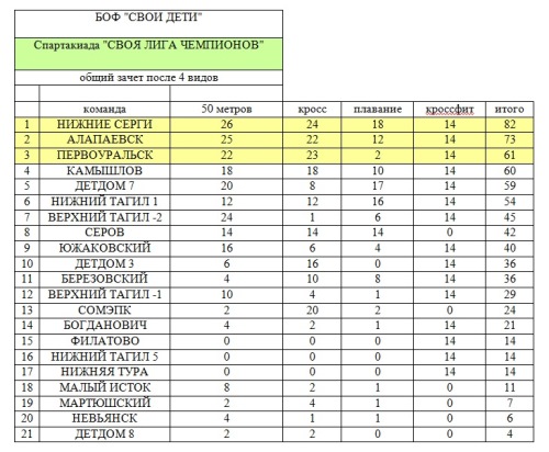 Напомним вам, что ребята соревновались в 4 видах - бег на 50 и 1300 метров, плавание и кроссфит.
