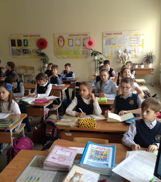 Координатор проекта Ксения Мурзина проводит занятия для учеников 3 и 4 класса лицея № 88 по правилам безопасности на дороге.